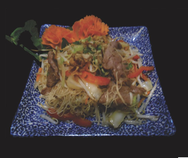 - Pâtes de riz sautées aux viandes mixtes et scampis CHINOIS
