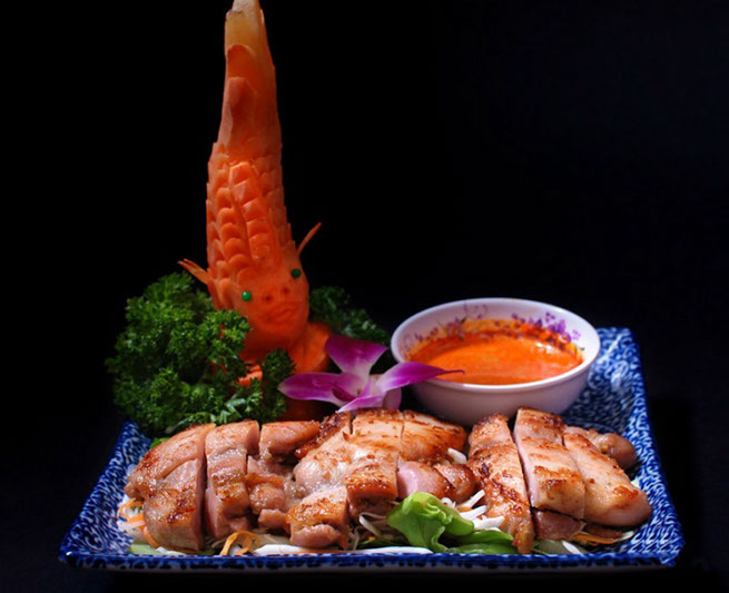 - Grilled chicken with sliced lemon grass
