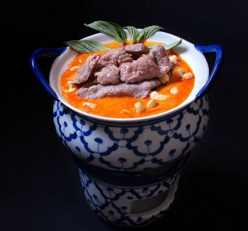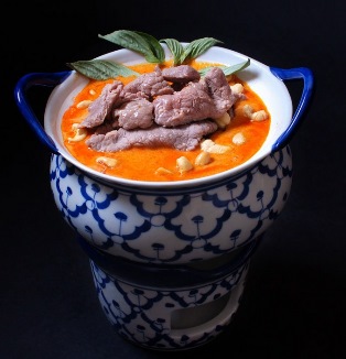 - Beef with red curry with coconut milk and peanut sauce