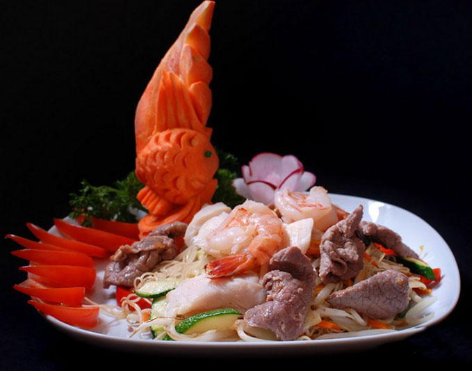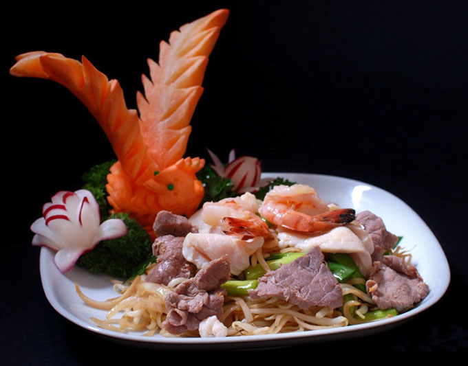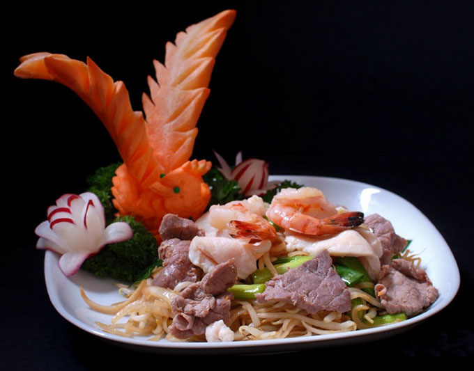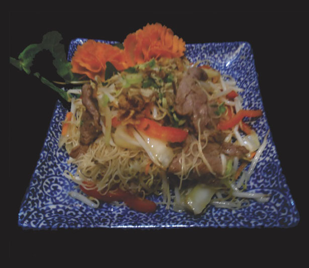 - Pâtes de riz sautées aux viandes mixtes et scampis CHINOIS