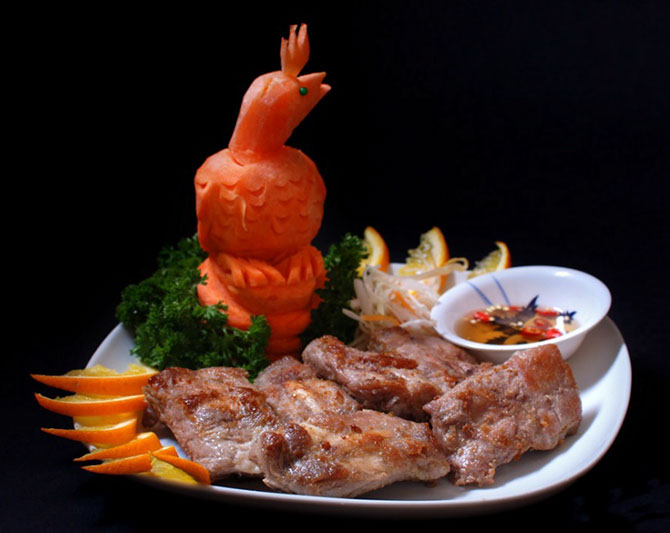 - Grilled spareribs with sliced lemon grass